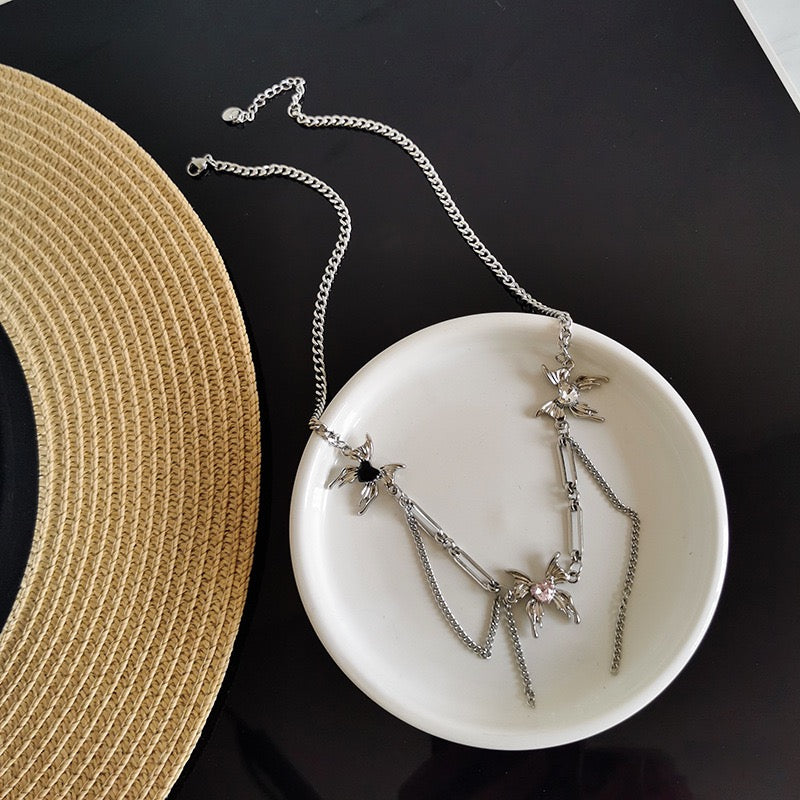 Spider necklace, pink necklace, black necklace, silver necklace, grunge necklace, grunge accessories, gifts for girls, Halloween accessories, Halloween jewellery
