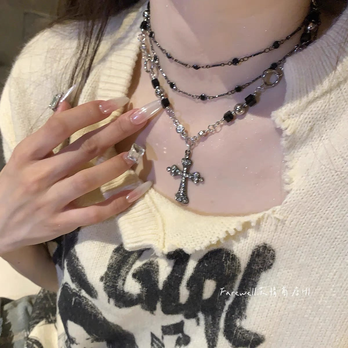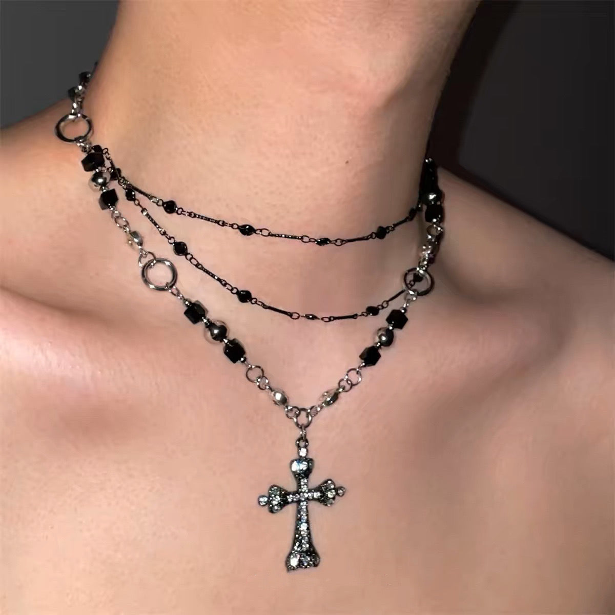 Cross necklace, black necklace, multilayer necklace, silver necklace, grunge necklace, grunge accessories, gifts for girls, Halloween accessories, Halloween jewellery