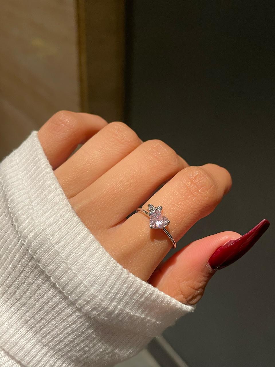 Heart jewelery, gift for her, promise ring, minimal ring, minimal jewelery, pink heart bow ring.