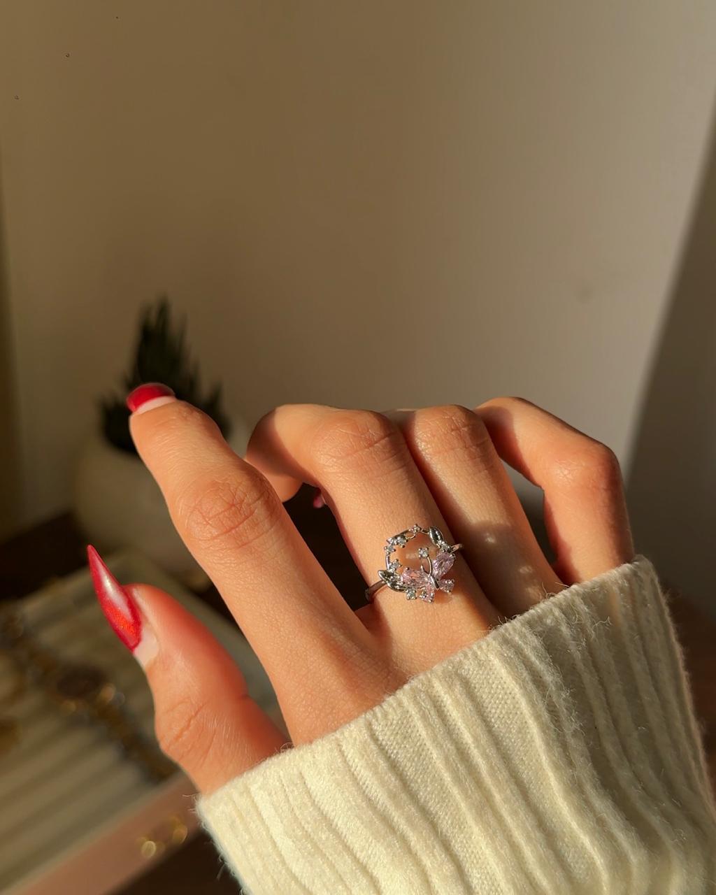 Pink ring, silver ring, dreamy jewelery, gifts for girls, butterfly ring, dreamy ring
