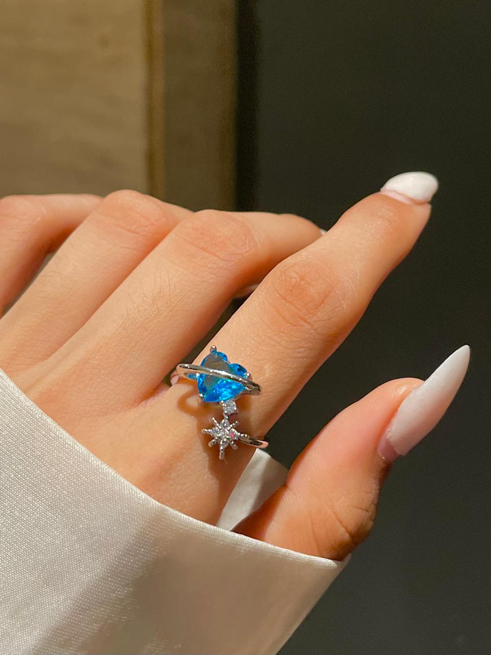 Minimal Ring, heart Ring, cute ring, dreamy ring, blue ring, star ring.
