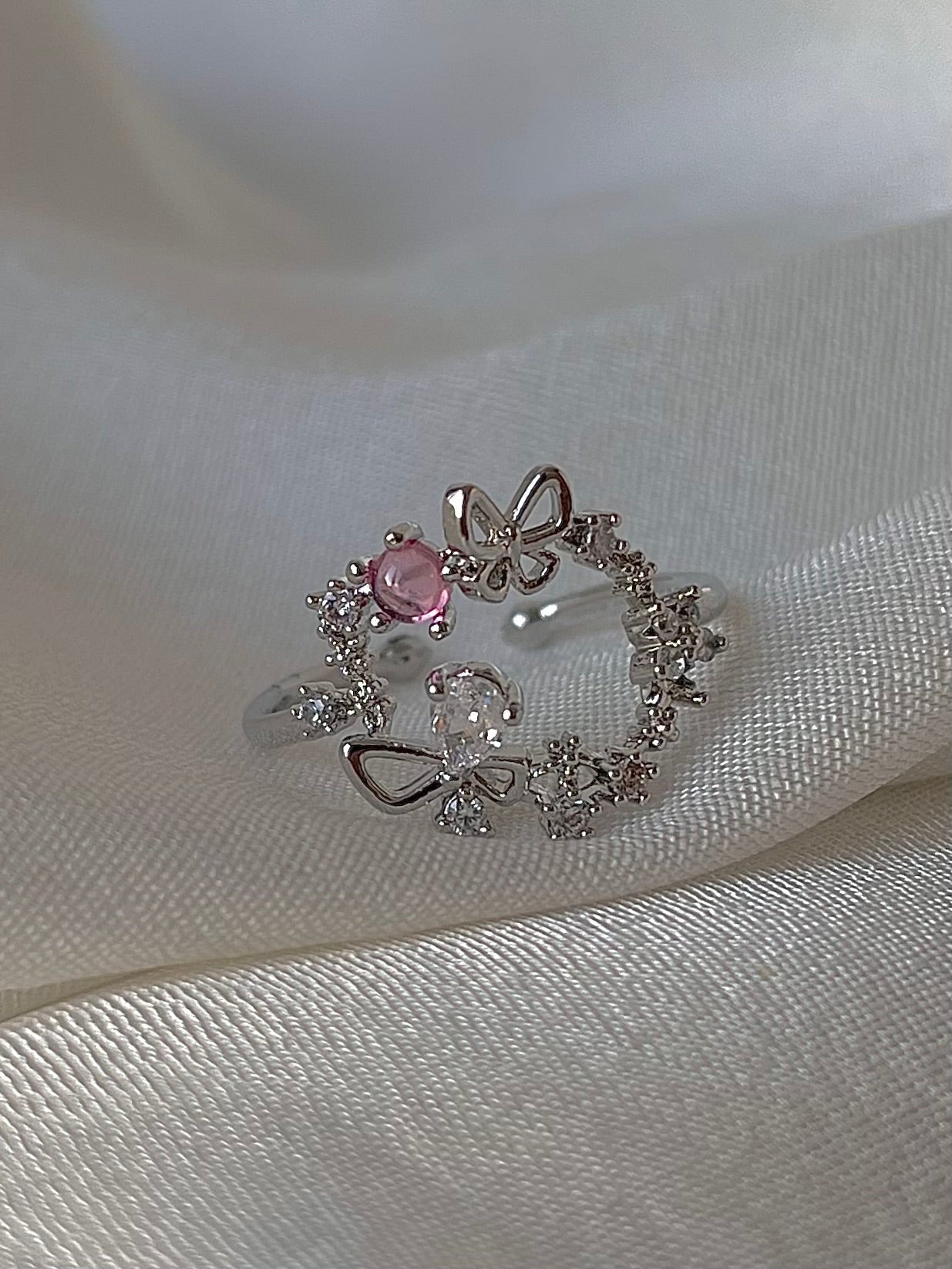 Silver ring, pink ring, butterfly ring, dreamy ring, gifts for girls, Pinteresty accessories