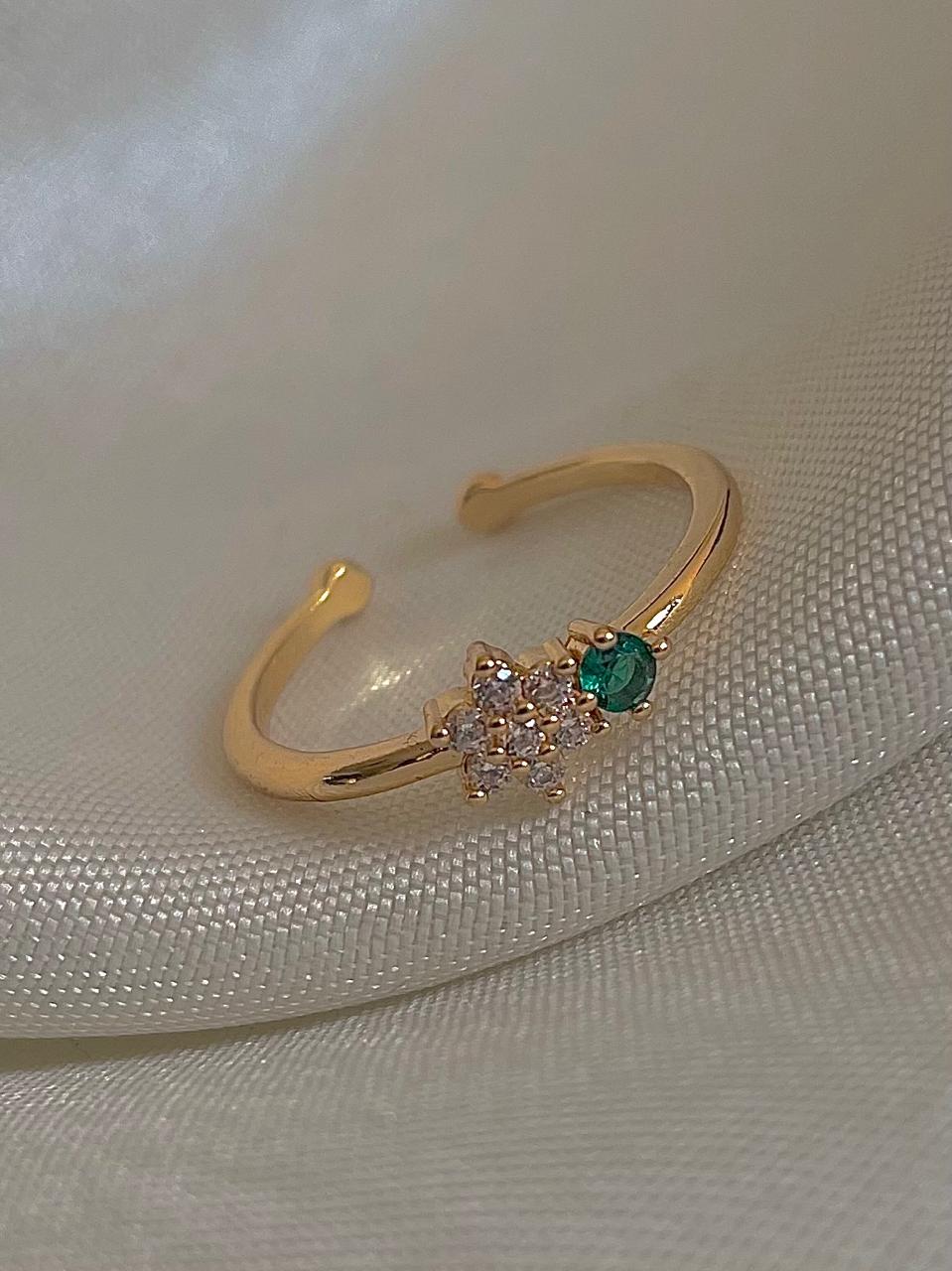 Golden Ring, minimal jewelery, cute ring, green ring, purple jewellery, floral ring, flower ring.