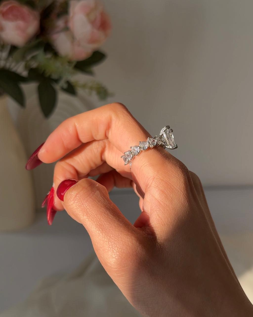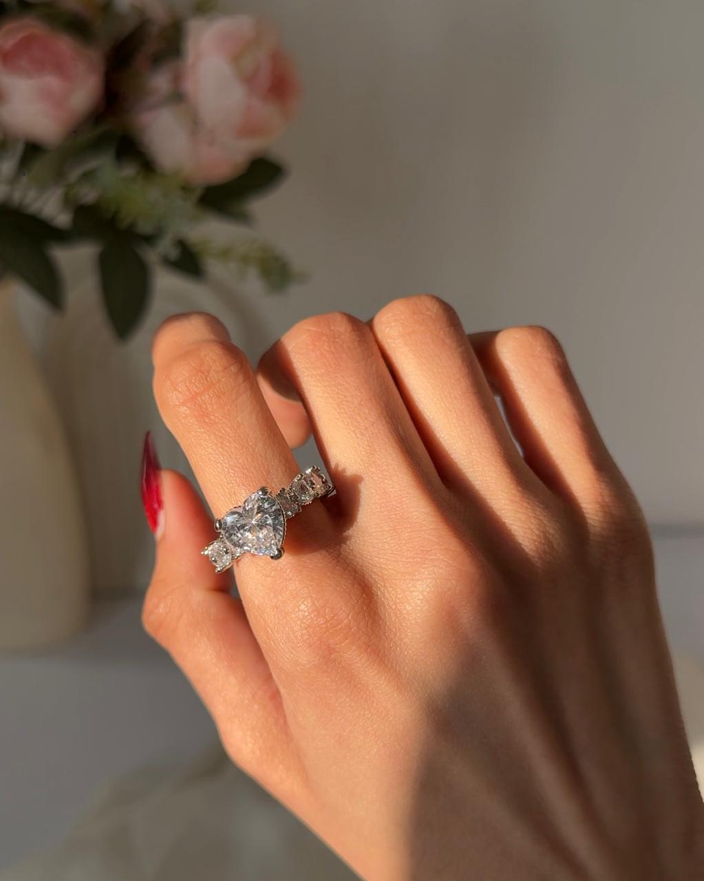 Heart ring, silver ring, rhinestone ring, dreamy jewelery, gifts for girls