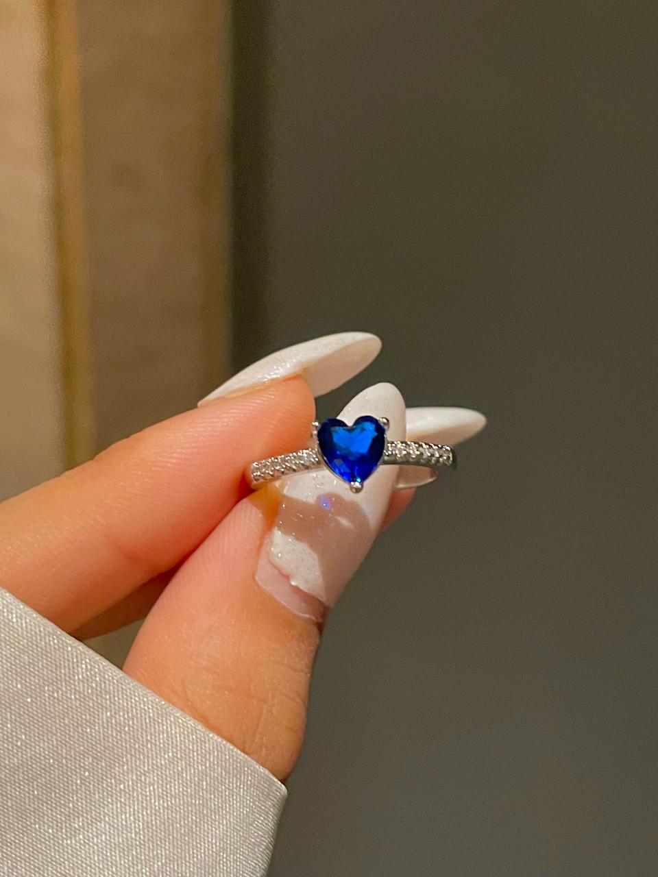 promise ring, propose ring, party ring, gift for her, blue ring, royal blue jewelery, heart ring