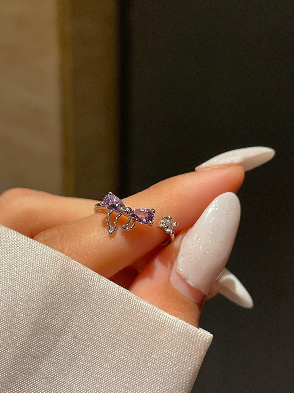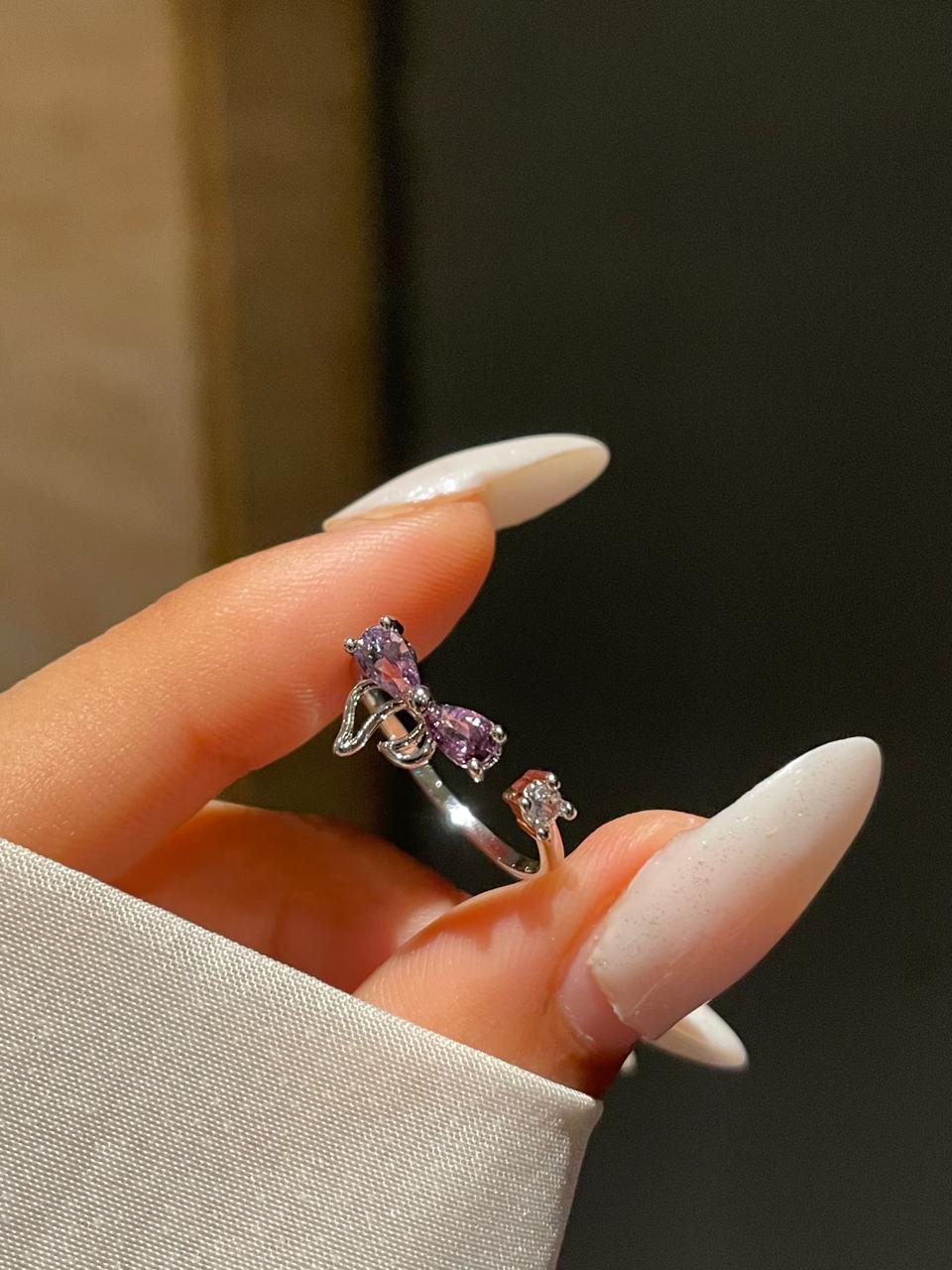 Minimal ring, Pinterest inspired jewellery, minimal jewelery, gift for her, minimal ring, purple bow ring, purple ring
