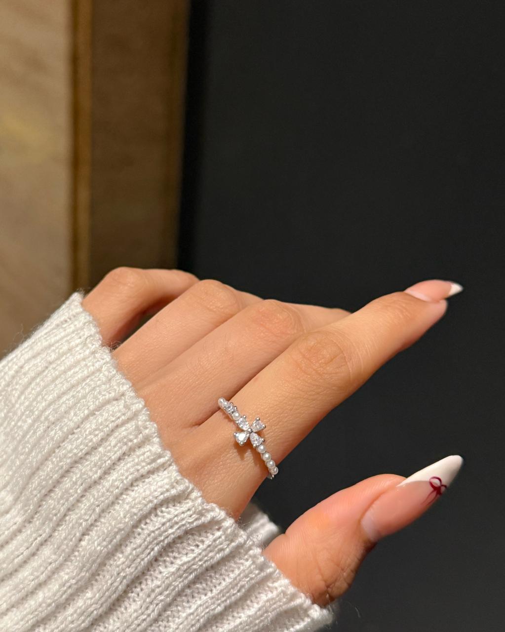 Minimal ring , minimal jewelery, flower ring, floral ring, pearl ring