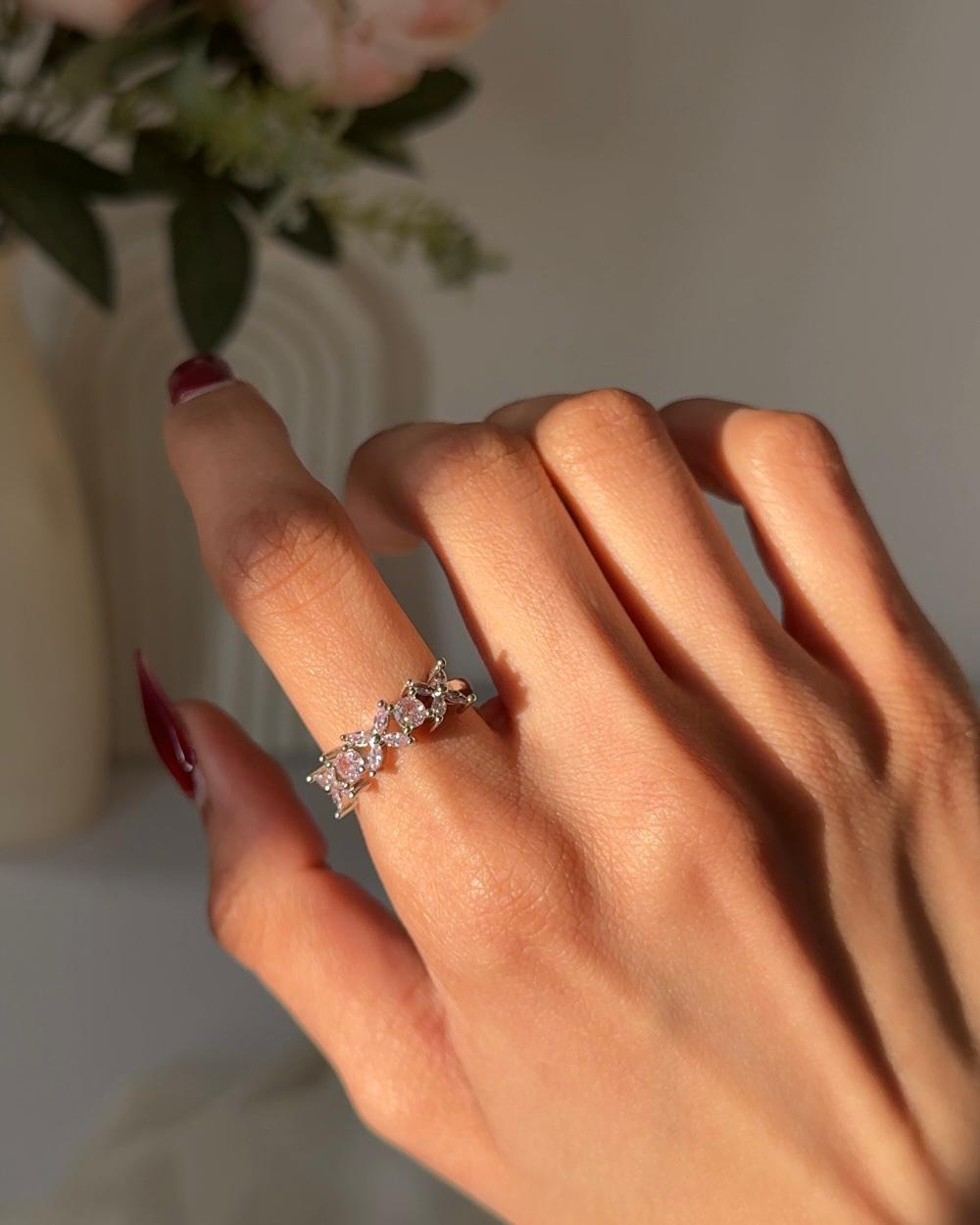 Pink ring, silver ring, rhinestone ring, dreamy jewelery, gifts for girls