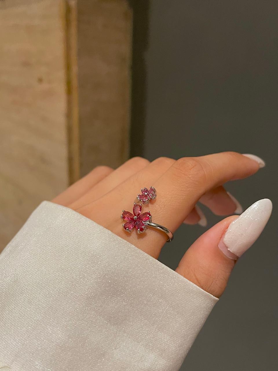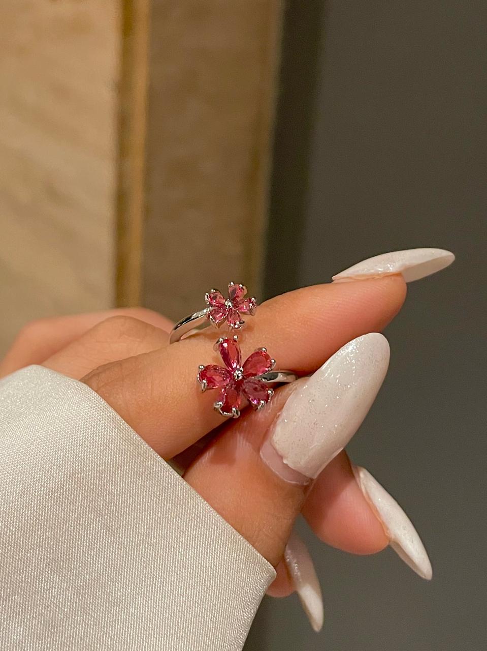 Nature lover ting, soft girl aesthetic, party ring, gift for her, pink ring, pink jewelery, flower ring, floral ring, deep pink / red ring