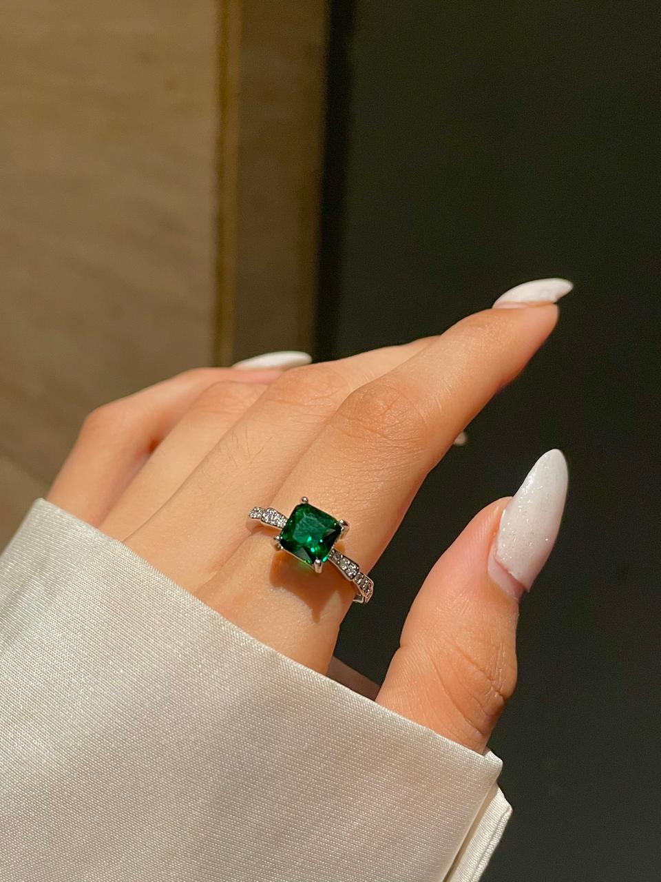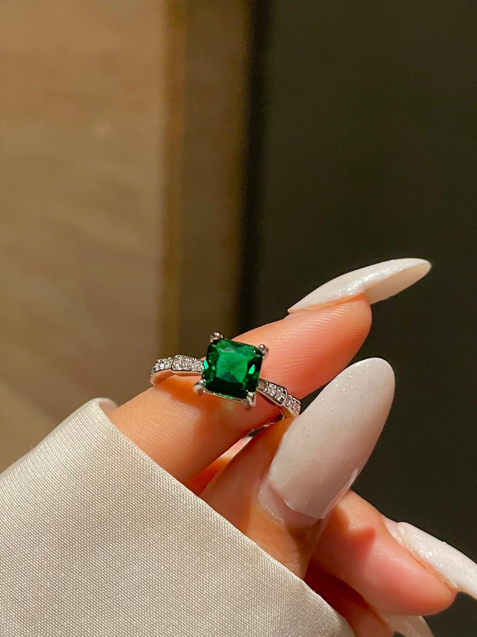 promise ring, propose ring, party ring, gift for her, square ring, green ring