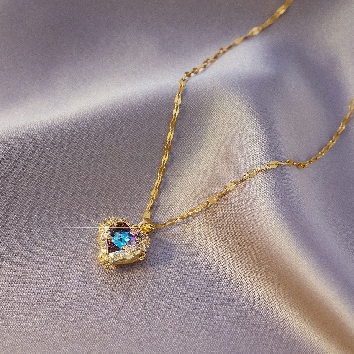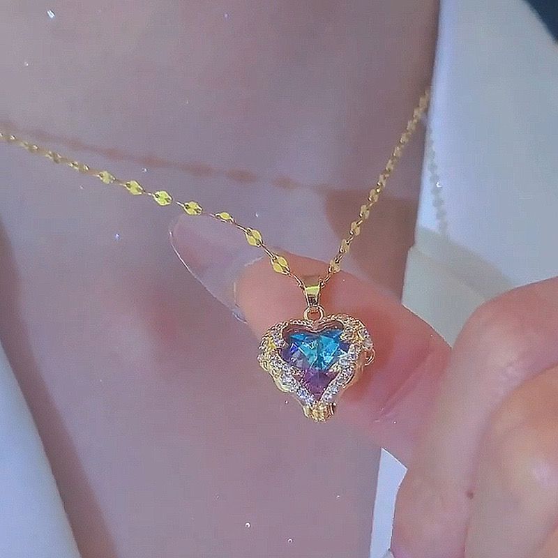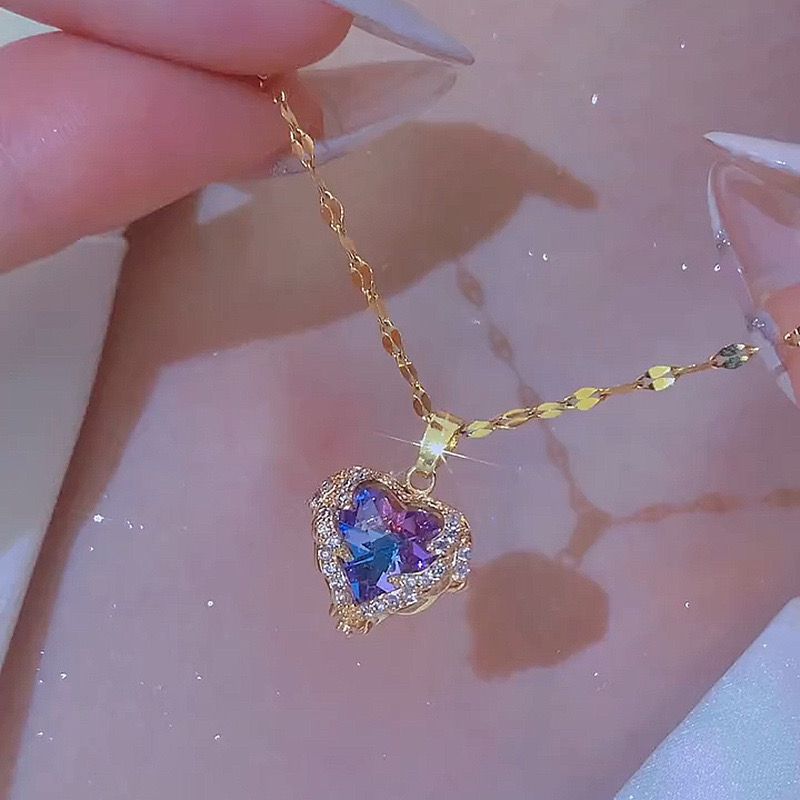 stainless steel necklace , golden necklace, anti tarnish necklace, anti tarnish jewellery, purple necklace, blue necklace, heart jewelery.