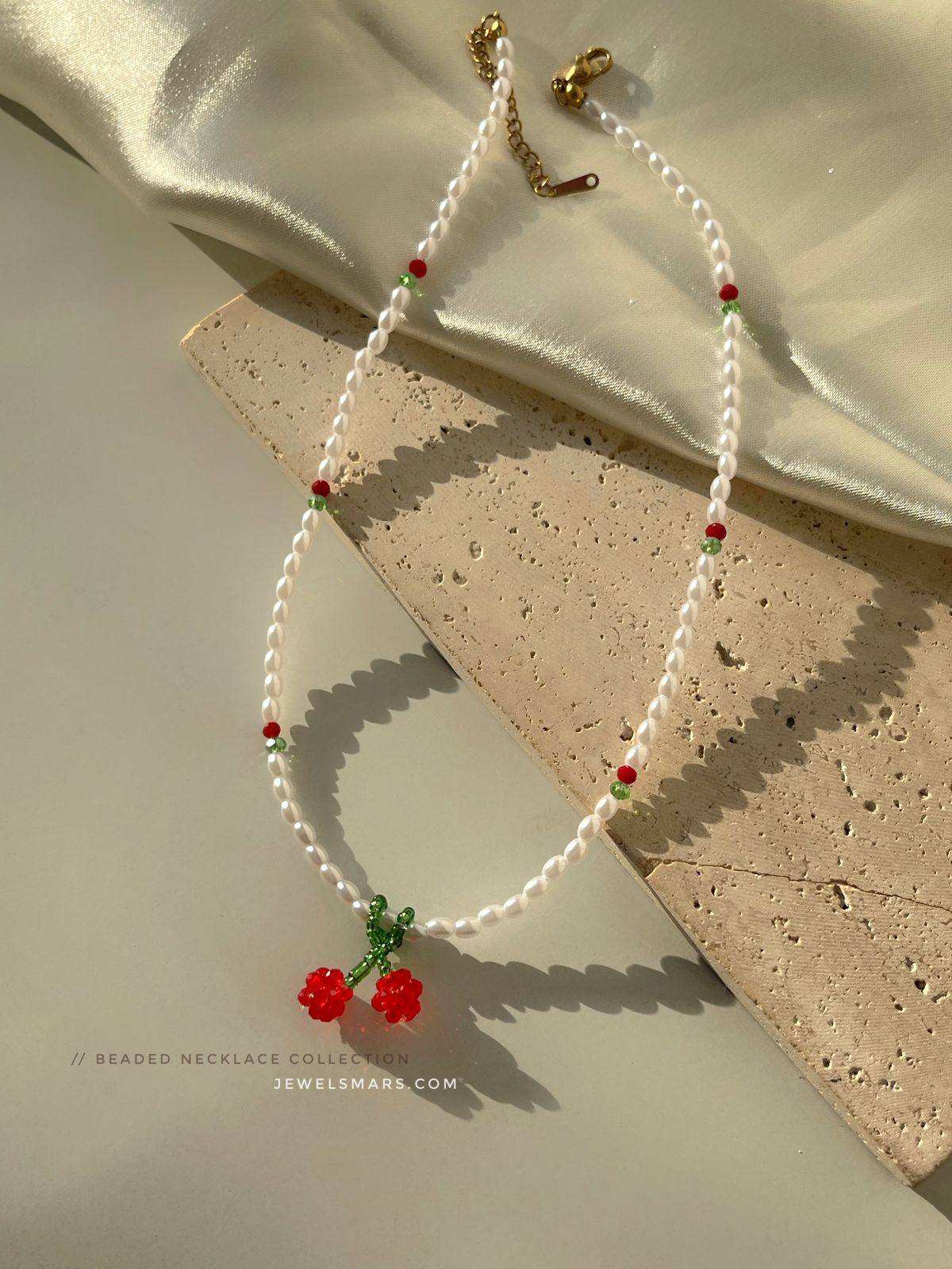 Beach necklace , Crystal beaded necklace, green necklace, red necklace, beads bracelets, pearl jewellery , pearl necklace, cherry necklace, cherry jewellery.