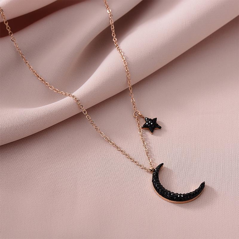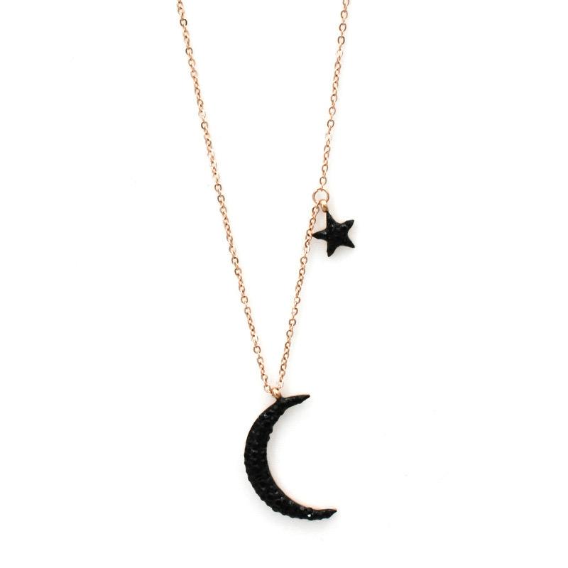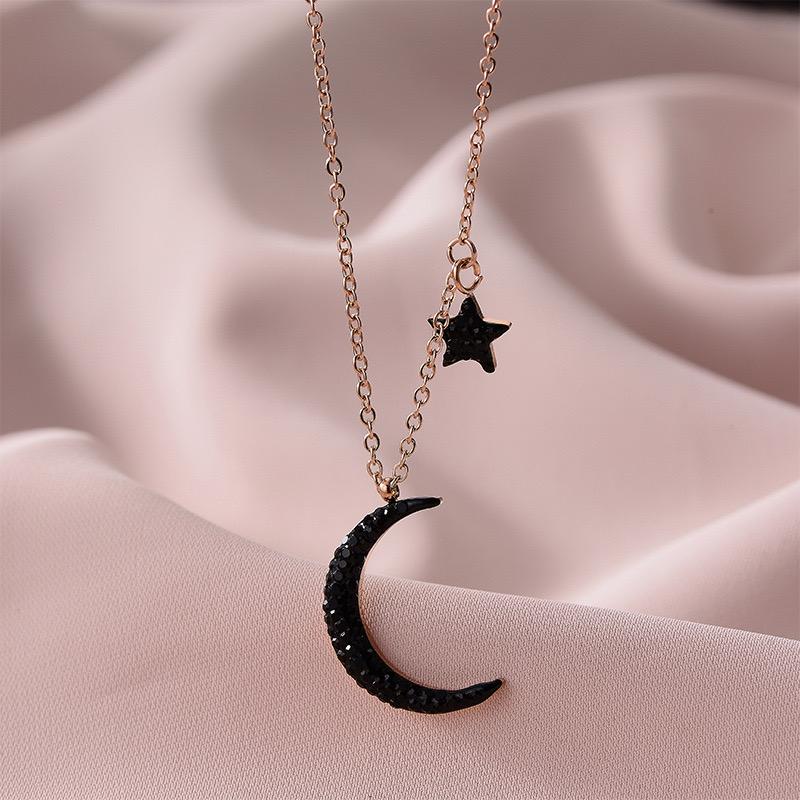 Anti tarnish necklace, black necklace, premium quality necklace, gifts for her, black moon necklace, cute necklace, office jewellery, Pinterest jewellery, stainless steel jewellery.
