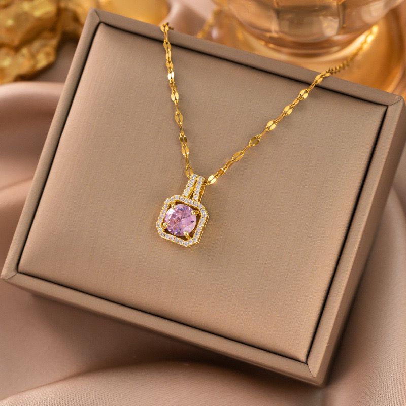 stainless steel necklace , golden necklace, anti tarnish necklace, anti tarnish jewellery, pink necklace, pink jewellery.