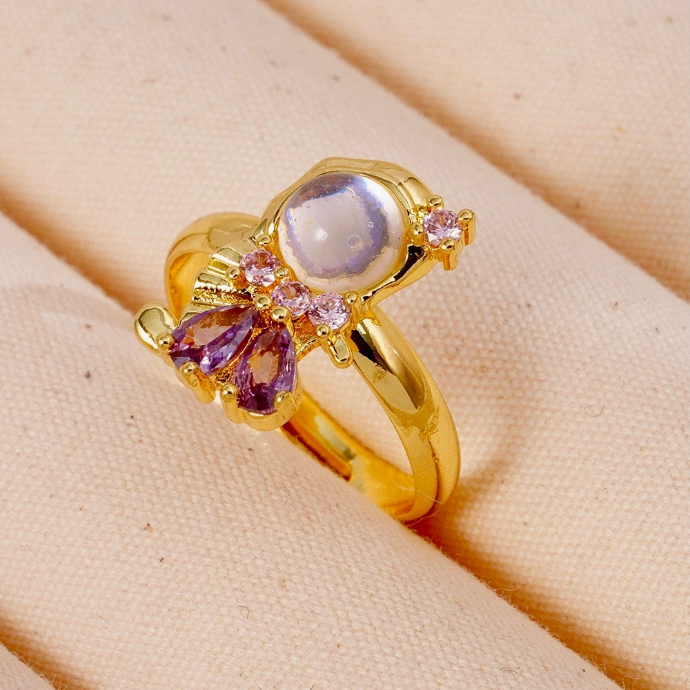 fairy coded ring, gold ring, purple ring, jasmine ring, anti tarnish ring, gold plated ring, gift for girls