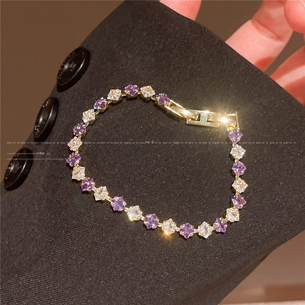 Silver bracelet, anti tarnish bracelet, purple bracelet, Pinterest inspired jewellery, purple jewellery, gifts for girlfriend, luxury bracelet