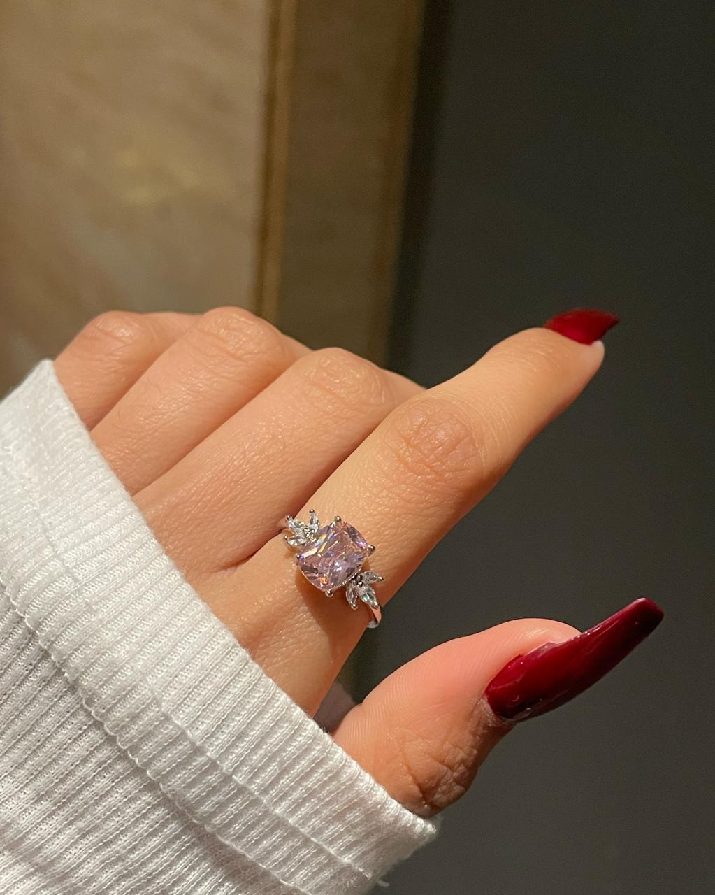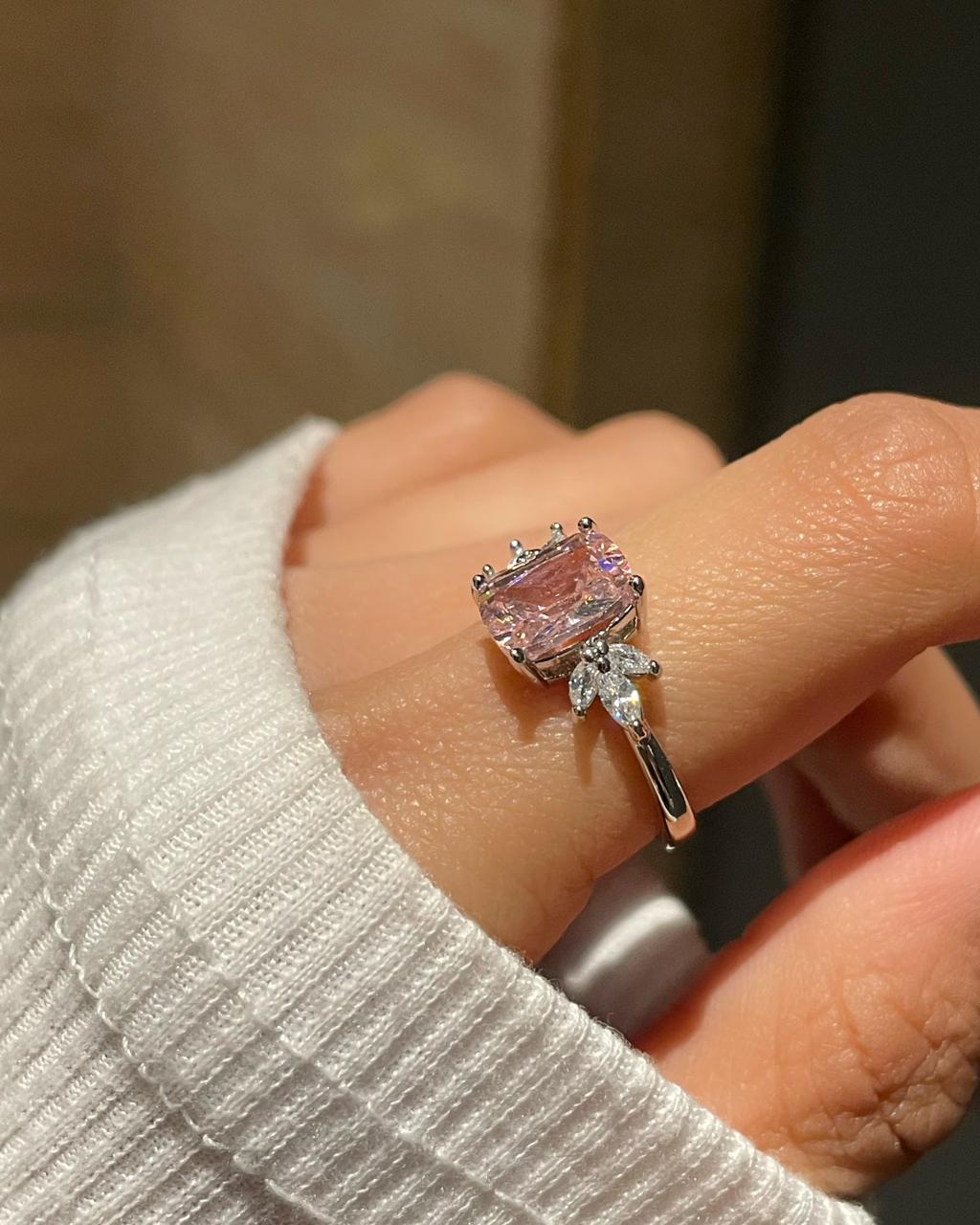 promise jewelery, gift for her, promise ring, solitaire ring, pink ring, leaf ring