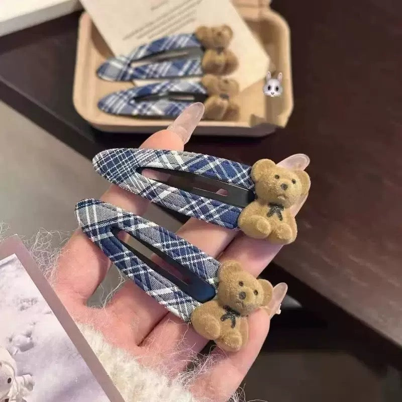 Blue hair clip, teddy bear hair clip, cute hair accessories, gifts for girls, blue hair clip