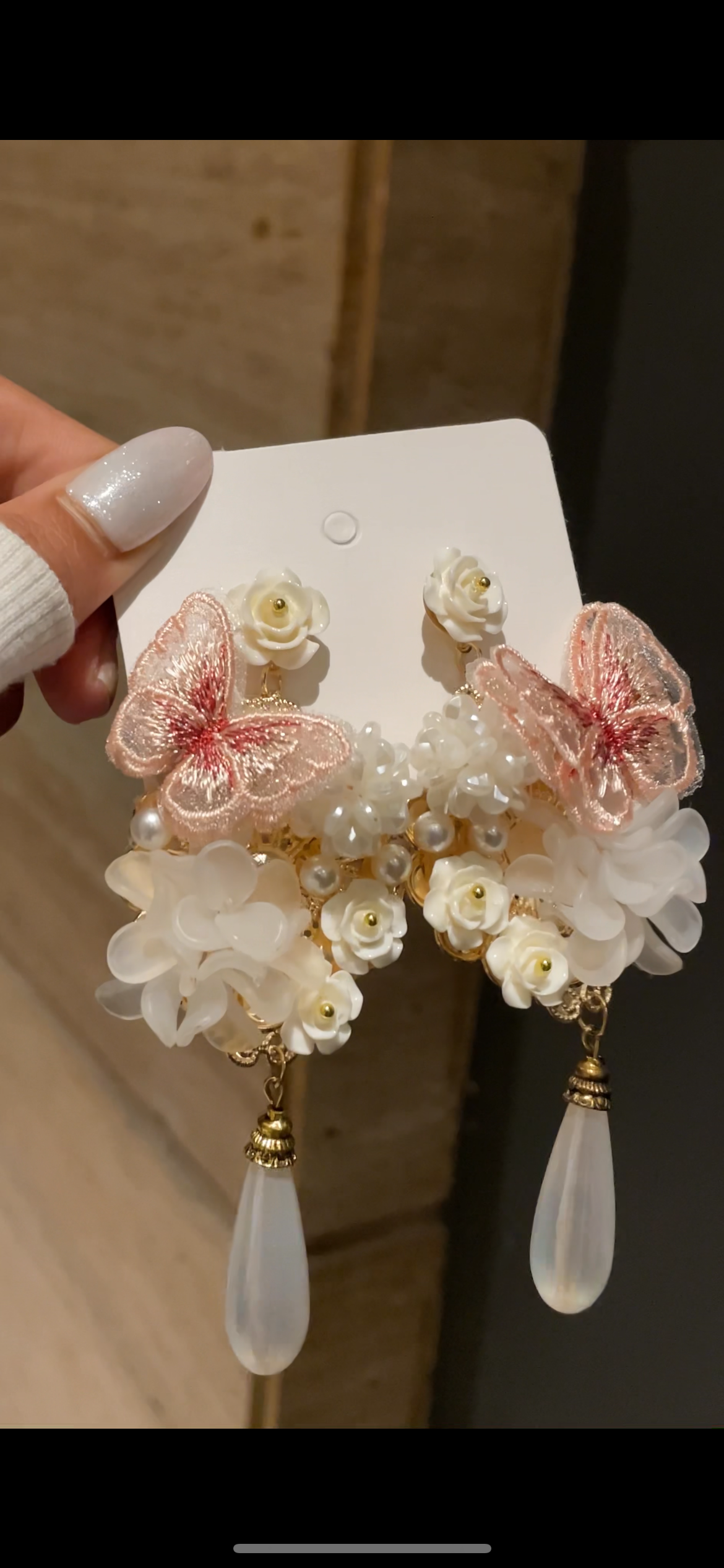 Golden earrings, party earrings, Korean earrings collection , girly girl earrings, glam earrings collection, dreamy earrings, purple earrings, floral earrings, butterfly earrings, flower earrings, dreamy jewellery, handmade earrings.