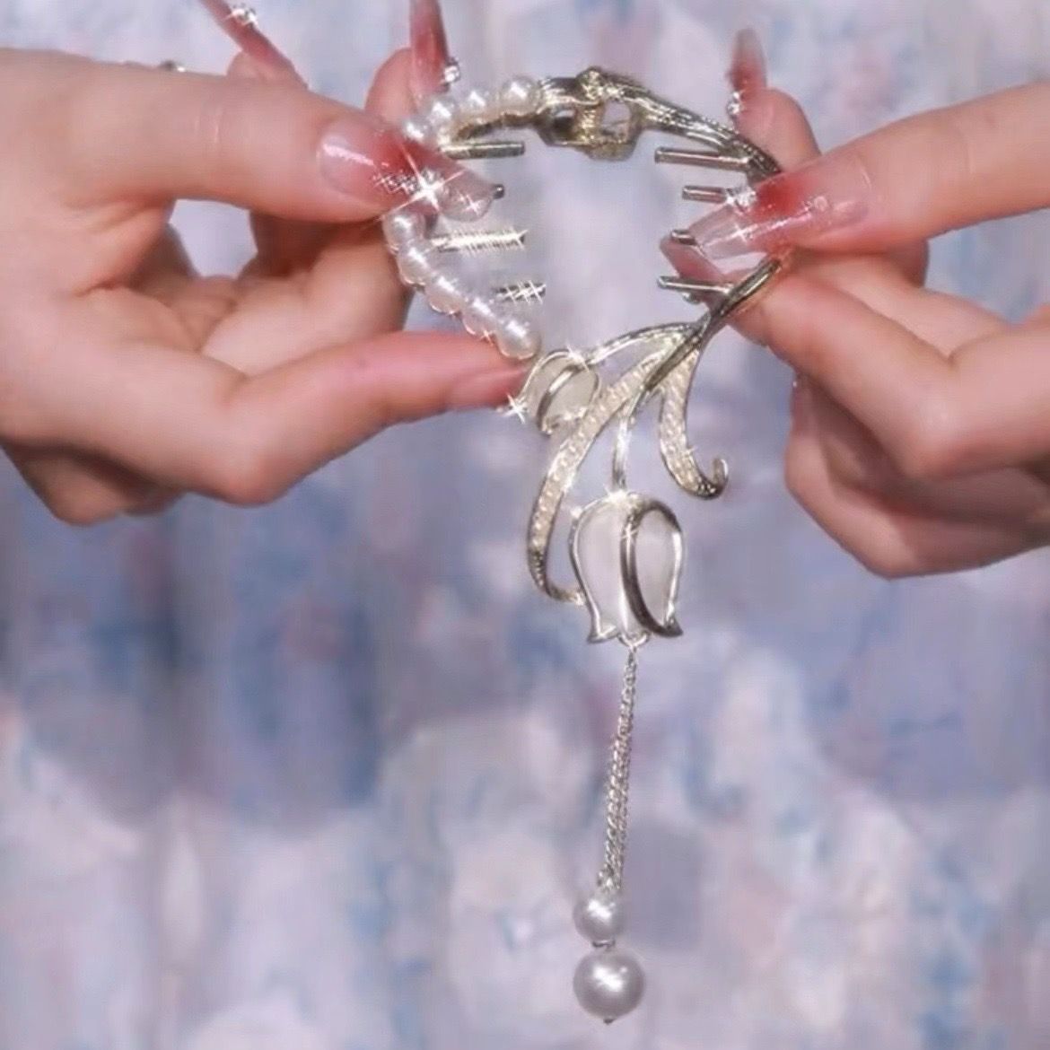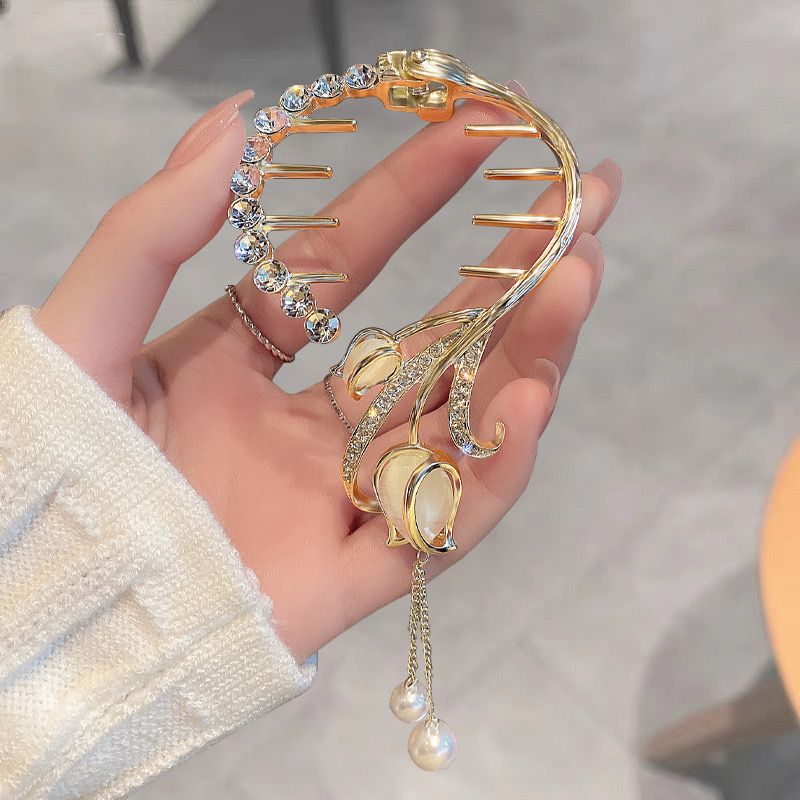 perfect for party looks, hair accessories, hair claws, flower hair claws, pearl hair claws, rhinestone accessories, bun party hair claw