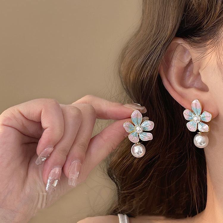 Korean earrings , soft girl aesthetic, flower earrings, floral collection, blue flower earrings, pink floral earrings, pearl earrings, cute earrings.