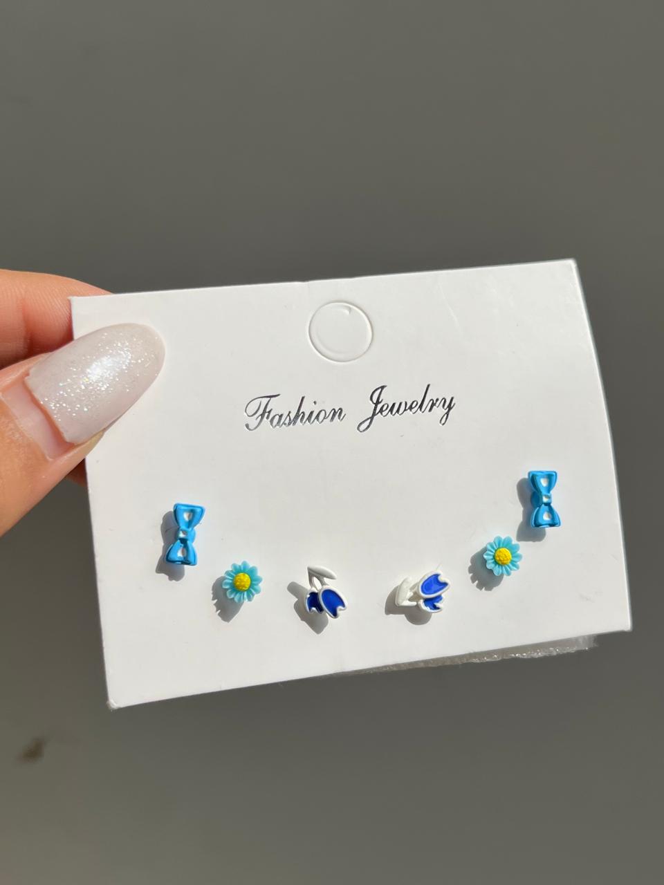 Korean earrings, cute jewellery , soft girl aesthetic , campus collection, blue earrings, office earrings, bow earrings, white earrings, floral earrings, flower earrings