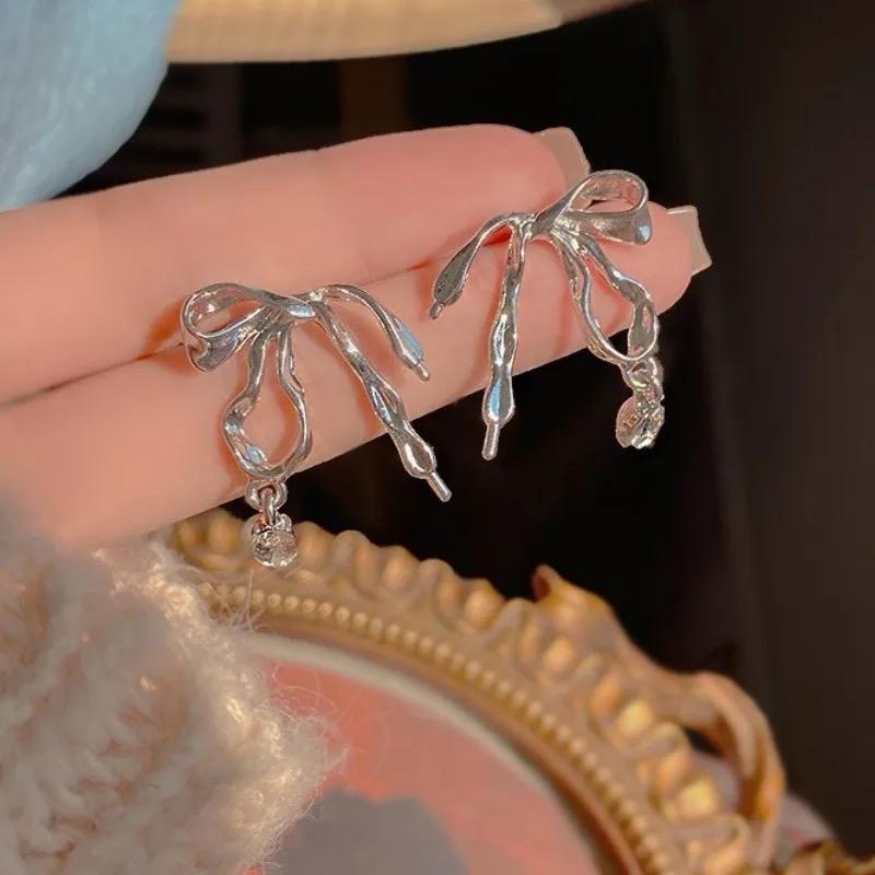 Korean earrings , soft girl aesthetic, Gen z earrings, campus collection, office earrings, bow earrings, silver earrings.