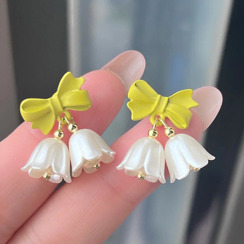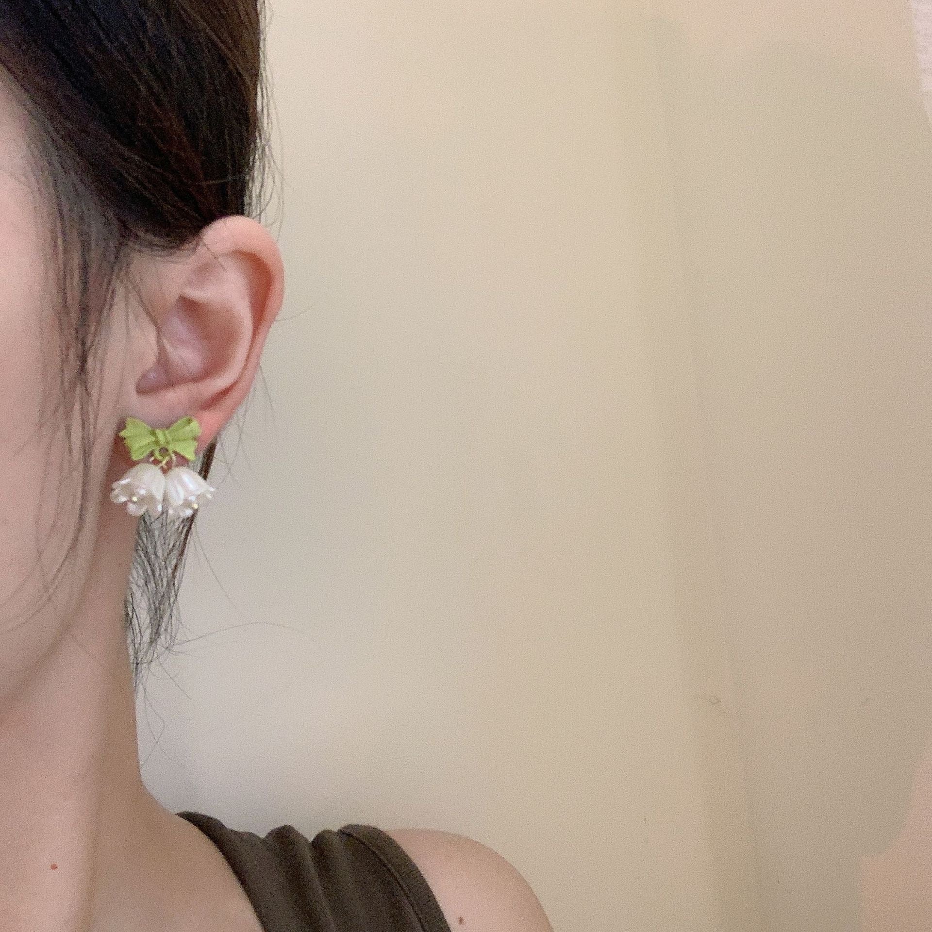 Korean earrings, bow earrings, cute jewellery , campus collection, Pearl earrings, flower earrings, floral earrings, green earringsĀ