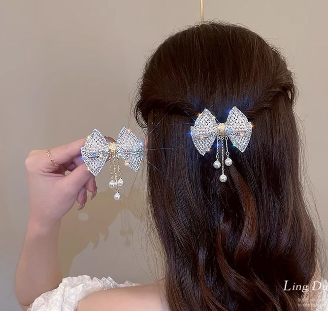 perfect for party looks, hair accessories, bow hair claws, pearl hair claw, rhinestones hair claw, tassel drop hair claws, pearl hair claws, rhinestone accessories.