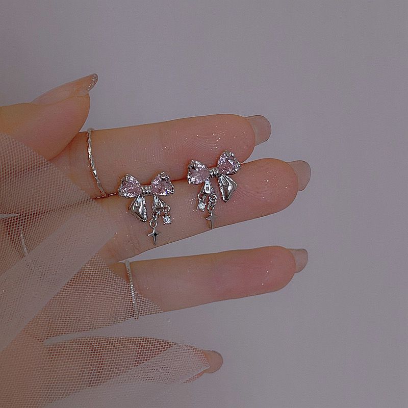 Korean earrings , soft girl aesthetic, campus collection, pink bow earrings, small earrings.
