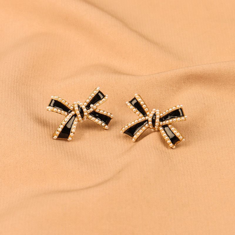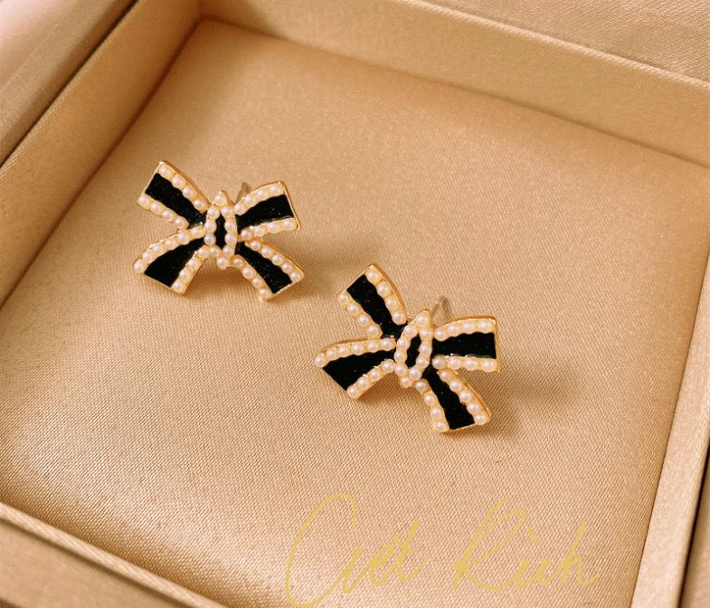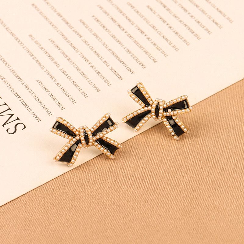 Bow earrings, black earrings, grunge inspired accessories, Pinteresty jewellery, Anti tarnish earrings, gold jewellery