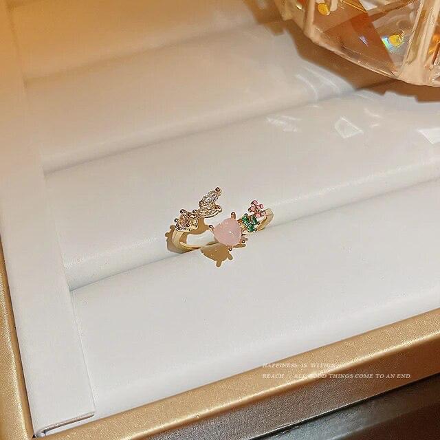 Dreamy Princess Rings collection 💫🦋 About this ring: - heart crown style ring - adjustable - high quality - will not lose colour easily Pro Tip: Avoid contact with water or chemical substances for long lasting shine ✨ Base Metal- Alloy Stone colour- peachy pink & green with transparent/ white stones Base colour- rosegold Pattern- heart Minimal Ring, peach Rings, minimal rings, green rings