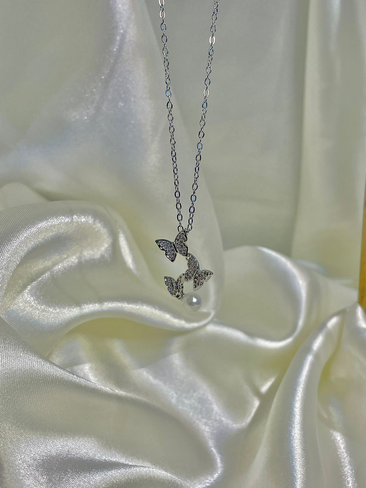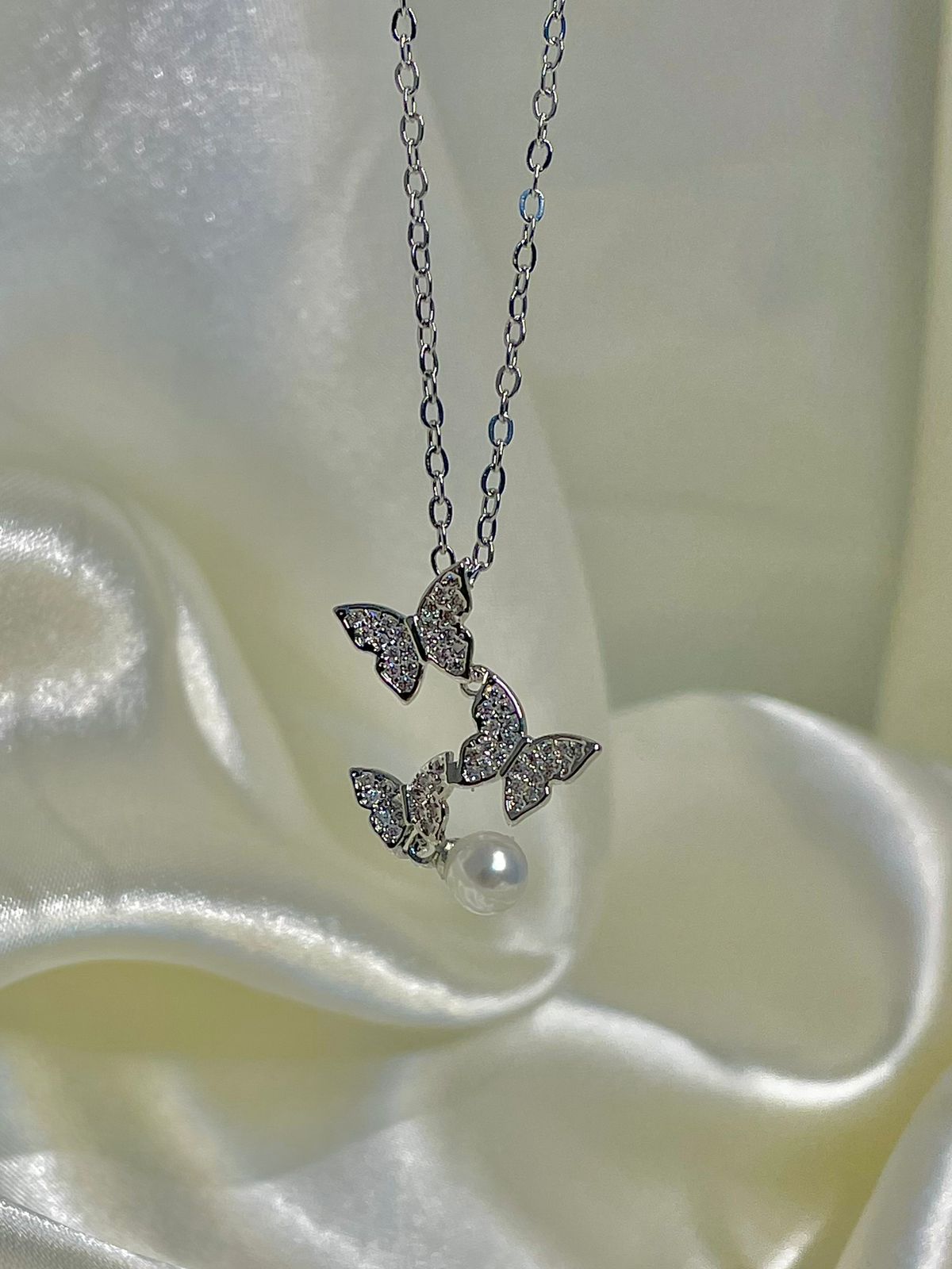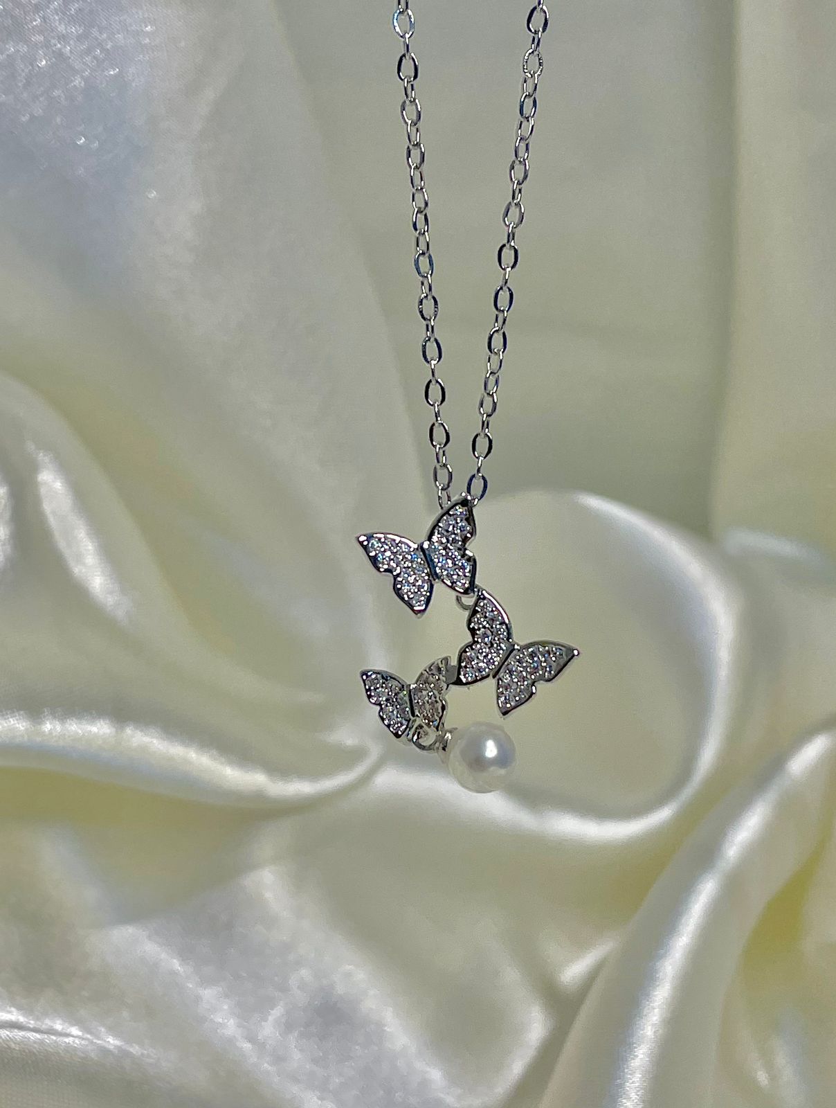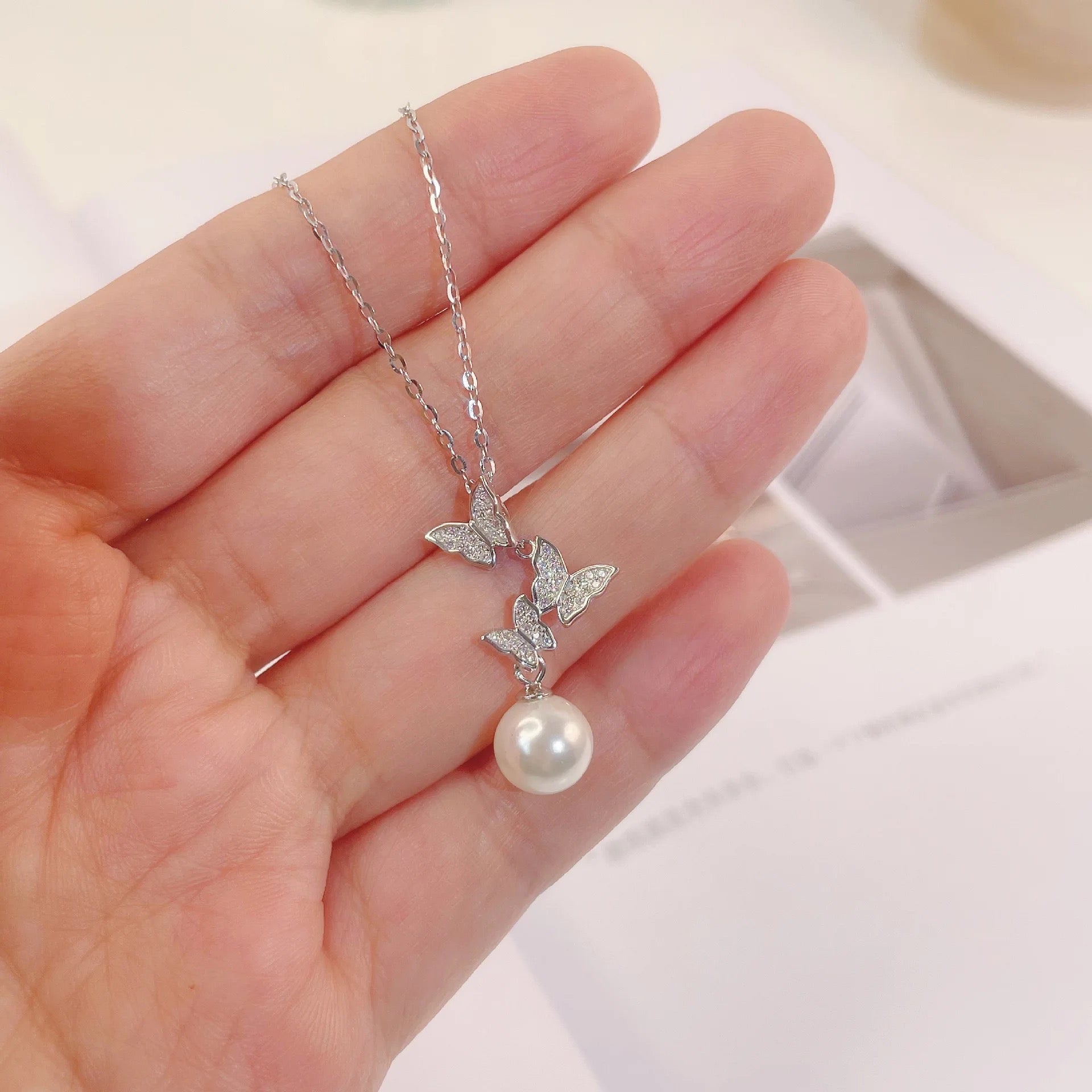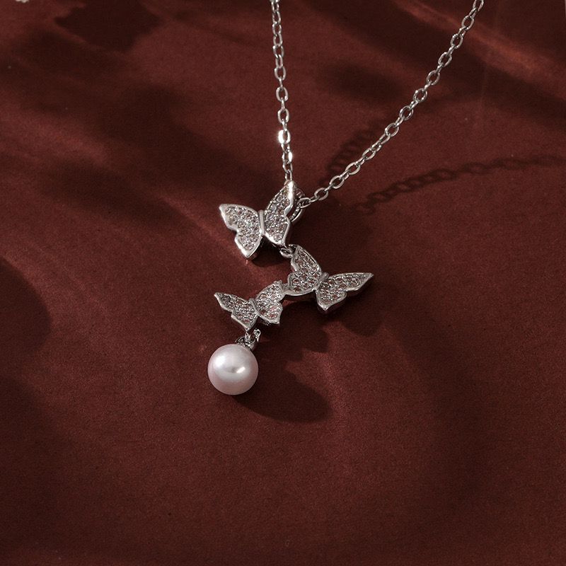 Butterfly necklace, pearl necklace