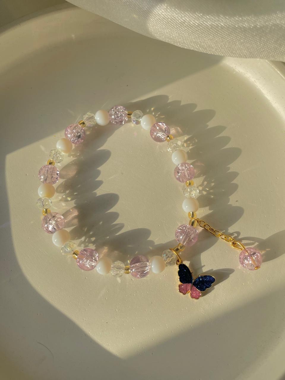 Bestie bracelets ,Crystal bracelets , pink colour bracelets, Crystal beads bracelets, butterfly jewellery, butterfly bracelets, white bracelets, purple bracelets.