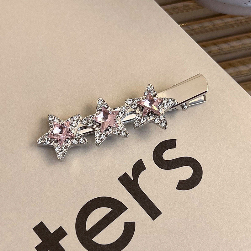 Cute hair accessories, Pinteresty hair clips, silver hair clip, star hair clip, pink hair accessories, silver hair accessories
