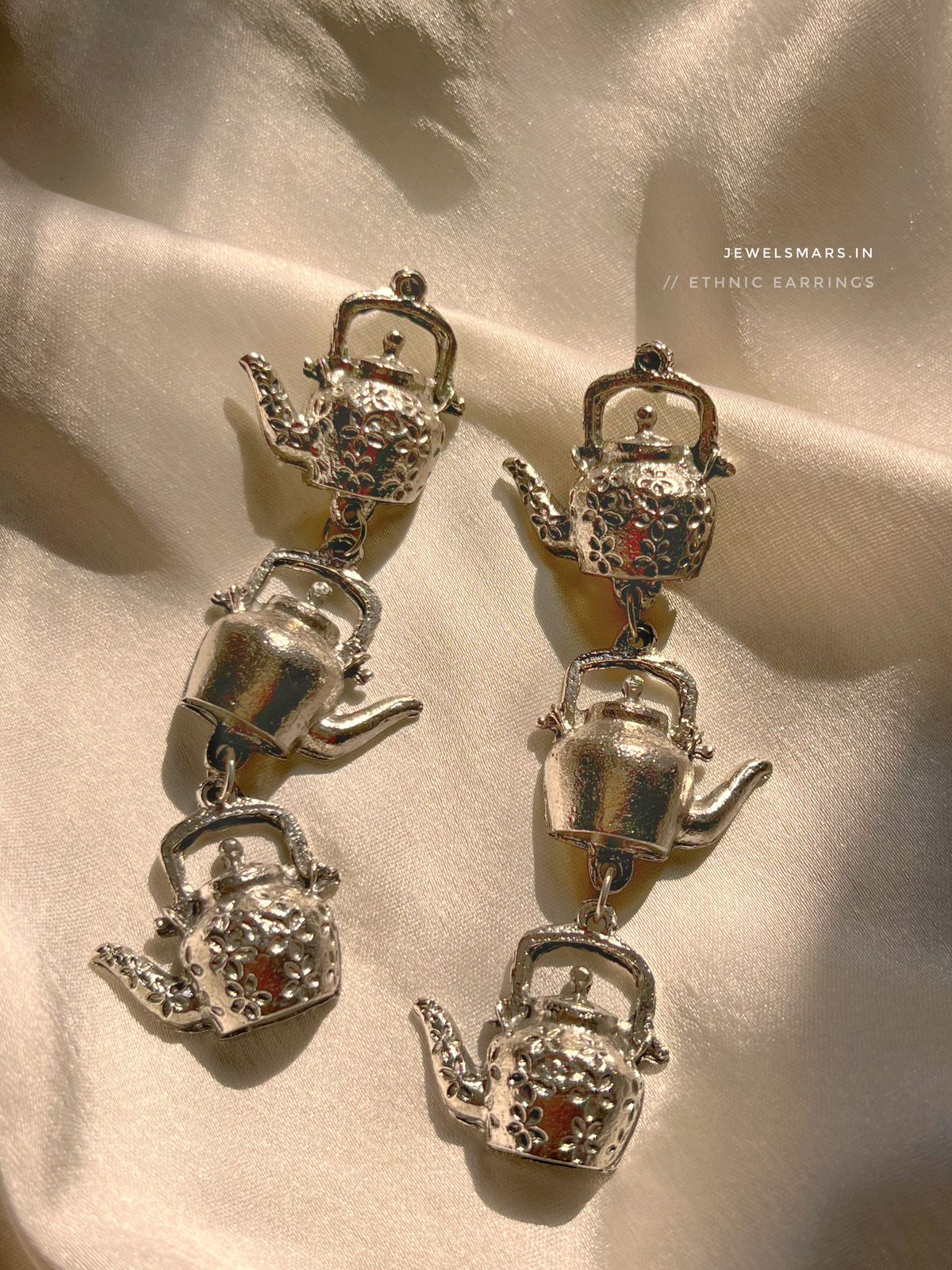 Ethnic earrings, pearl earrings, silver earrings, earrings for Kurti, oxidised earrings.