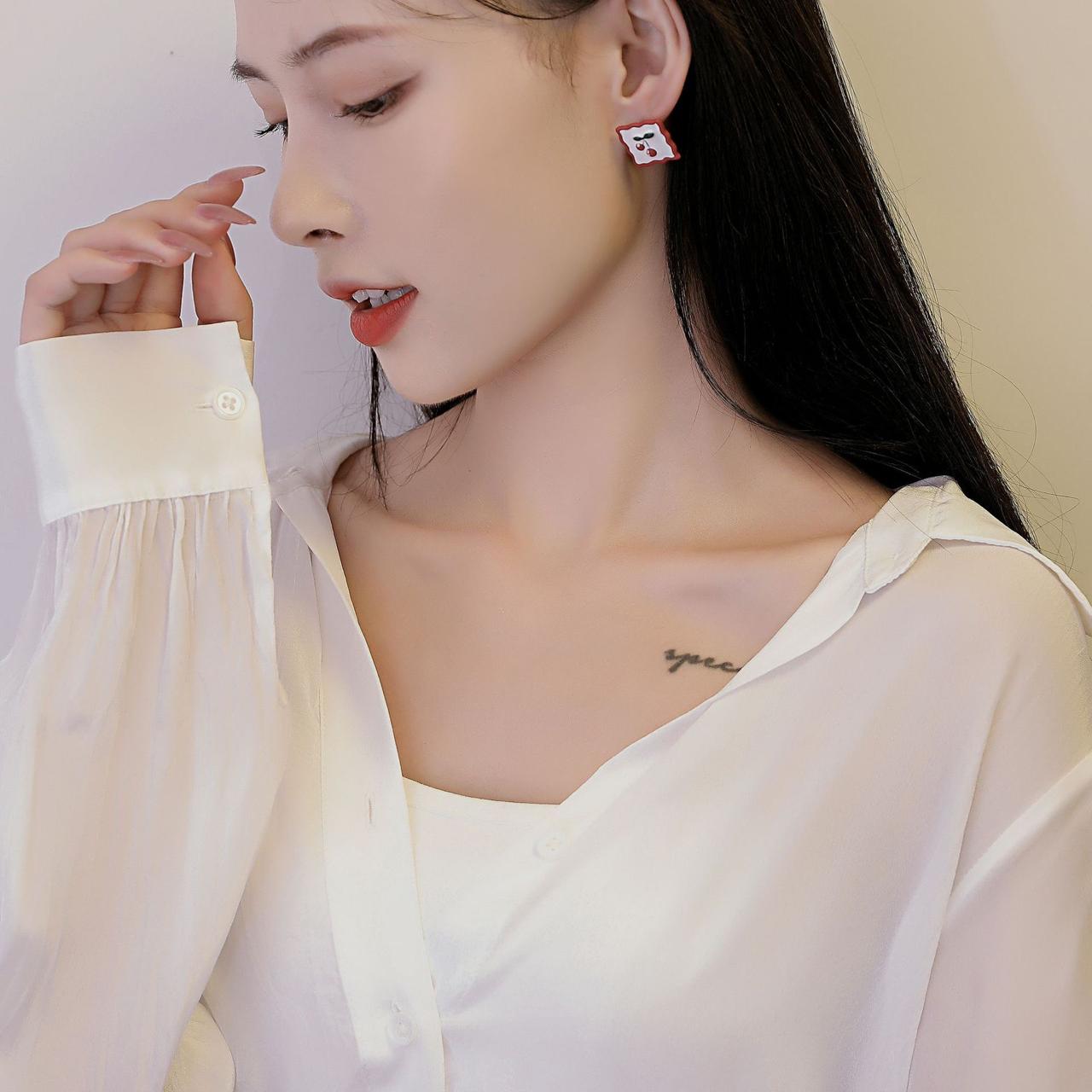 Korean earrings, party earrings, cute jewellery , campus collection, soft girl aesthetic, red earrings, green earrings, white earrings