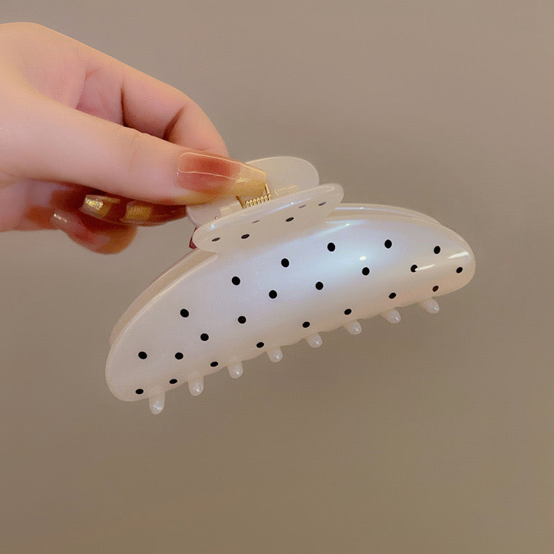 White hair claw, black claw clip, polka dot claw clips, Pinteresty hair claw, gift for girls, soft girl accessories