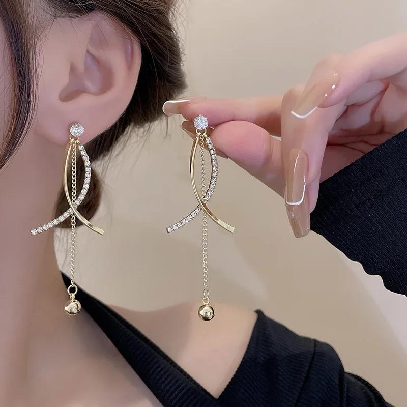 Criss cross tassel drop earrings